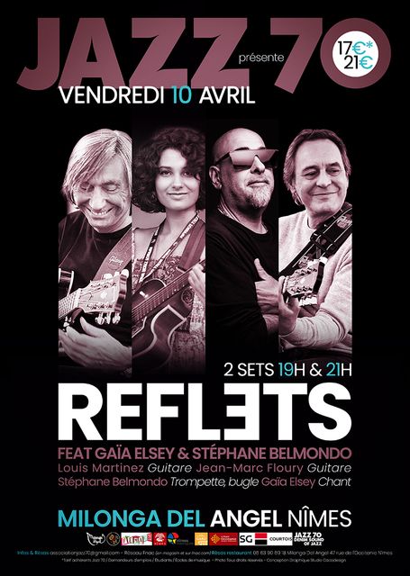 Pour cette soirée exceptionnelle, Reflets s’entoure de deux invités de premier plan. Stéphane Belmondo, trompettiste incontournable de la scène jazz française et internationale, rejoint le projet. Son jeu lyrique, sa profondeur musicale et sa longue complicité artistique avec Louis Martinez donnent à cette rencontre une dimension toute particulière. À leurs côtés, Gaïa Elsey, jeune chanteuse née à La Réunion, apporte une voix lumineuse et métissée, nourrie de ses nombreux voyages en Afrique, en Asie, au Mexique et en Europe.